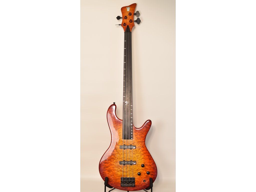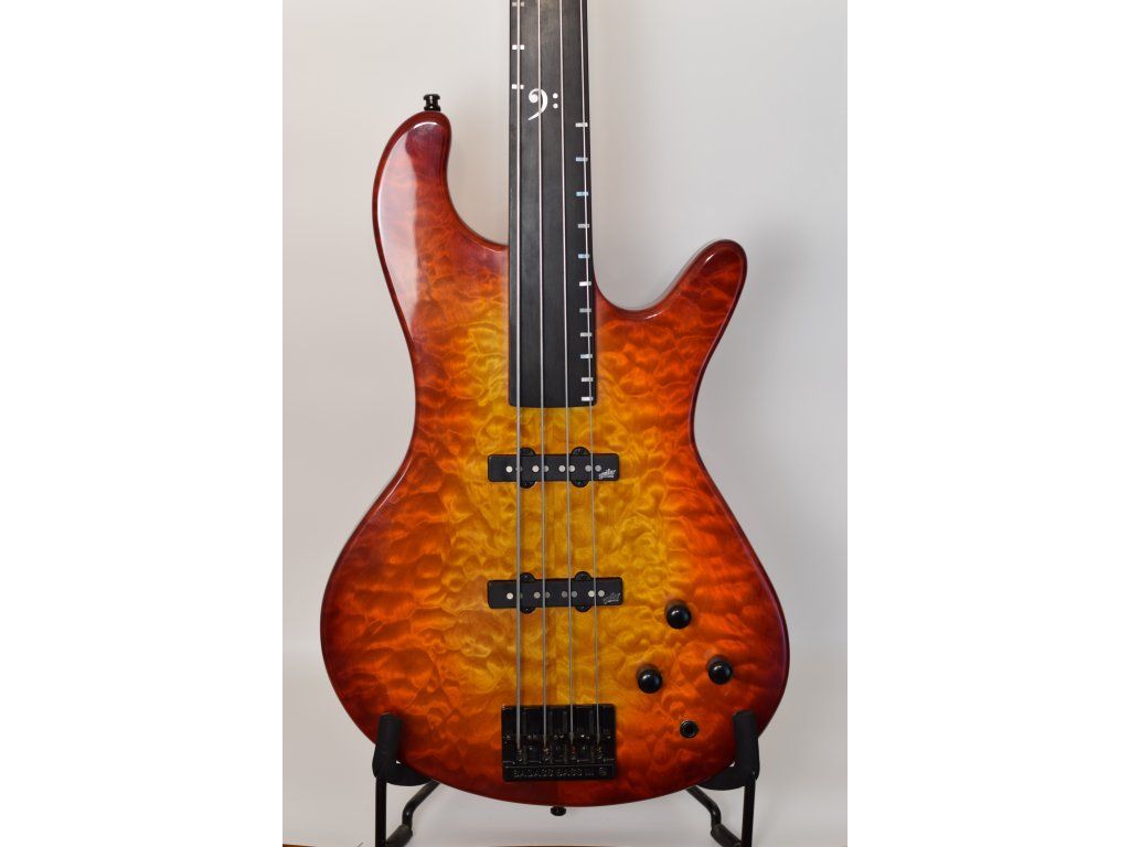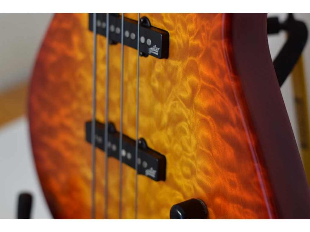 Krk dva kusy žíhaný javor, ebenový hmatník, vykládaní perletí. Žíhaný javor na hlavici - top i spodek.
